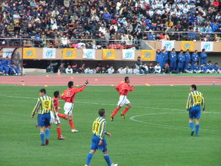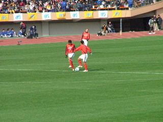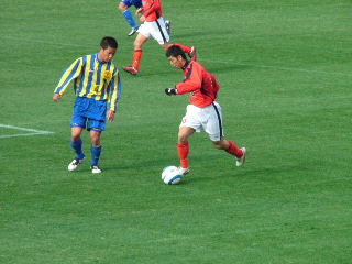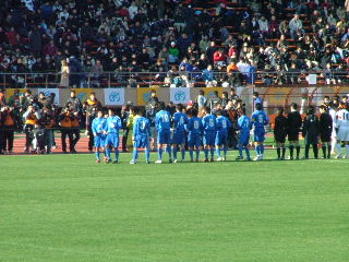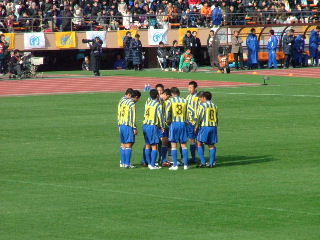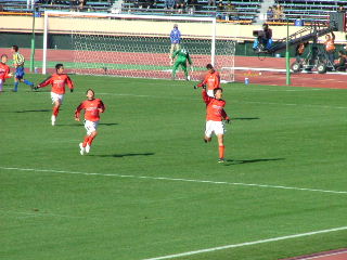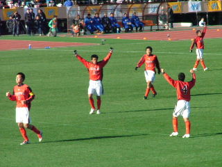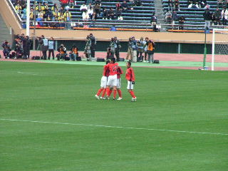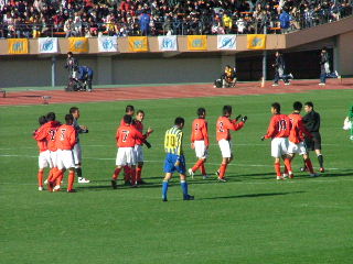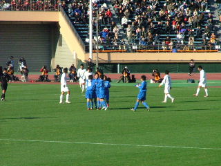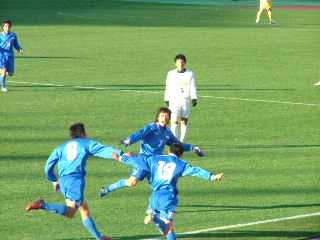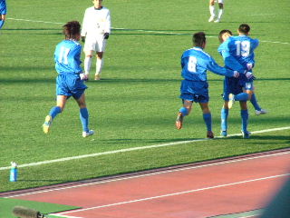 得点者のところに駆けよる 得点は、DF20西岡 50メートルゴール