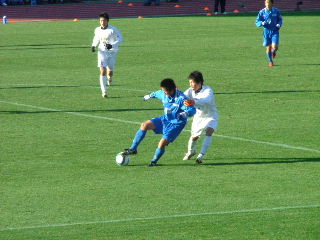 国見・藤田選手のDF 鹿児島実業・山下選手