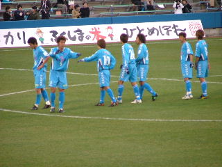 山形・右の臼井選手から原選手のヘッドが決まって山形先制