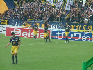 同点になり喜ぶ甲府
