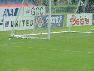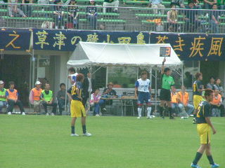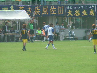 横山選手クロスをあげるがタッチラインを割ったとの判定!!どこがでしょう・・・
