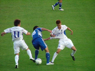 ソニー・高田選手と佐川東京・大久保選手の競り合い 元・横浜FC同士