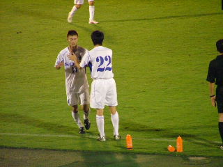 FWの村田・石原選手に代わって桐田・本多選手出場してキックオフ